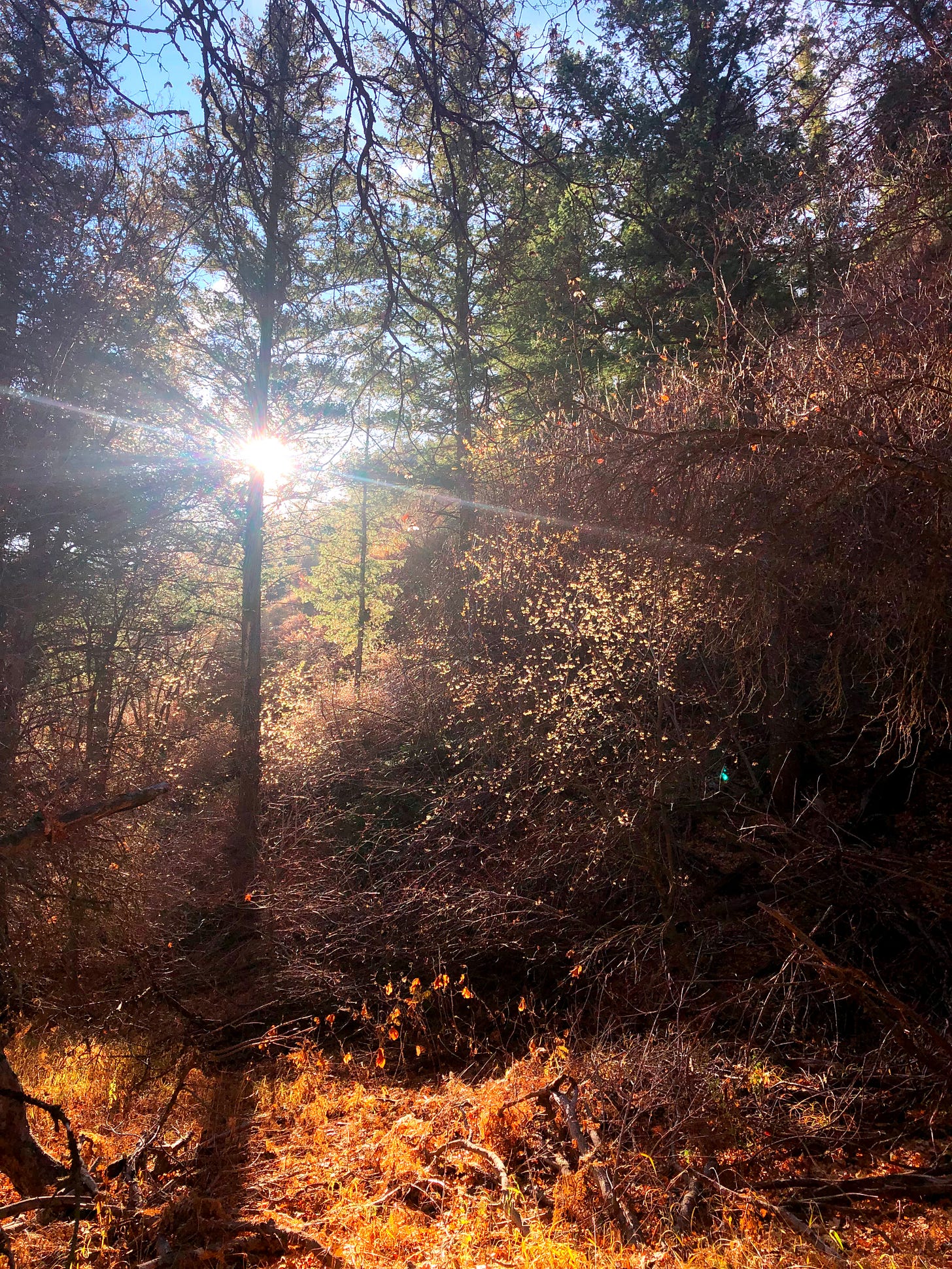 It has been unseasonably warm in these parts. The reseeded Violas are blooming, standing strong. It has snowed, but melted off the high up pathways I take. Most of the leaves are off the trees. On today’s dog walk, the mountain forest glowed a sweet amber as the sun rose. There is a decided quiet amongst the trees now. It’s lovely.